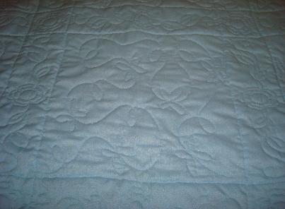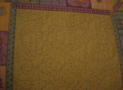 | Baby Meander in middle of quilt, Hands and Feet border. |